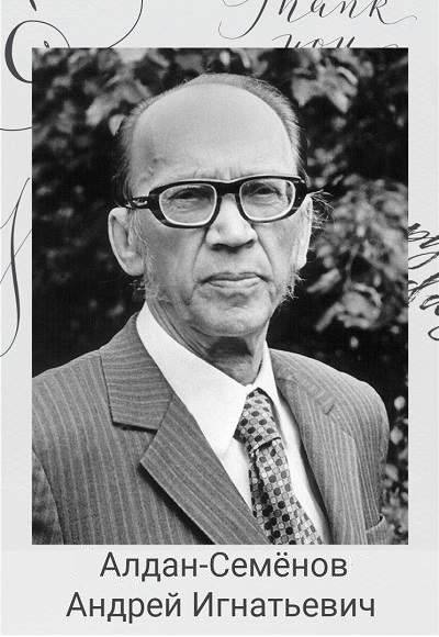 Андрей Игнатьевич Алдан-Семёнов (1908–1985) — русский советский писатель, поэт и журналист, член Союза писателей СССР. Родился в крестьянской семье в Вятской губернии. Рано оставшись без родителей, воспитывался в детском доме. Начал карьеру журналиста в газете «Вятская правда», позже работал в Омске, Казахстане и Казани.