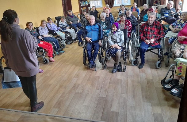Видеокруиз по жизни легенды начался, как и полагается, с ее рождения, с 1935 года. Получатели услуг дома-интерната узнали историю, почему актрису нарекли именно Людмилой, и как сама Гурченко говорила о своих способностях к пению. Помещение озарялось улыбкой героини и ее блестящими нарядами, которые она сама конструировала. Мы слушали песни из кинофильмов и те песни, которые она написала, как композитор. Вспоминали известные сцены из фильмографии актрисы и смеялись, впервые наблюдая процесс съемок отдельных кадров. Людмила Гурченко несла людям свет, энергию, тепло. Но не забудем, что ей выпало пережить и военную эпоху. Она не говорила о том, что видела, не рассказывала ужасов и трагедий. Только ее военные песни звучат очень правдиво и жизненно. В заключение нашего видеокруиза мы послушали эти песни. Им веришь.