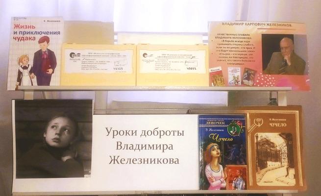 Для читателей в орловском филиале КУКОО «Орловской специальной библиотеки для слепых им. А.Г. Абашкина» в честь 100-летия со дня рождения писателя открылась выставка «Уроки доброты Владимира Железникова». Это разноформатные книги, которые станут интересны как современным школьникам, так и старшему поколению, желающим окунуться в ностальгию прошлого.