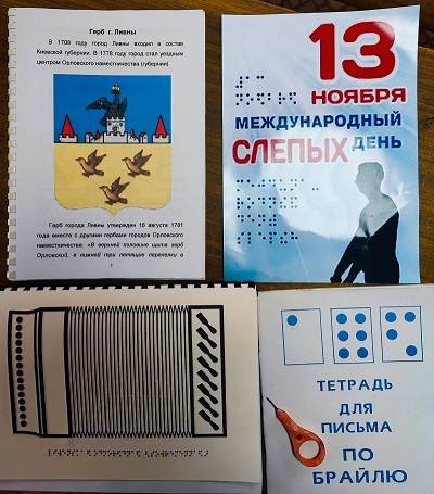 В Международный день слепых библиотекарь Ливенского филиала побывала в местной организации Всероссийского общества инвалидов. С участниками встречи поговорили о людях, которые нуждаются в поддержке и помощи. В этот день библиотекарь рассказала об известных незрячих, чьи имена вошли в историю: Луи Брайль, Гомер, Н. Лобачевский и другие.
