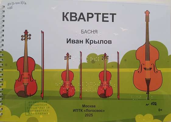 — Басня Ивана Андреевича Крылова «Квартет». Предлагаемое издание предназначено для работы с незрячими детьми дошкольного и младшего школьного возраста. Задача пособия – познакомить детей с главными человеческими принципами.