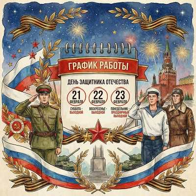 Уважаемые читатели! Совсем скоро мы будем отмечать День защитника Отечества, а это значит — нас ждут праздничные выходные. Хотим заранее рассказать о режиме работы библиотеки, чтобы вы могли спланировать визит заранее.