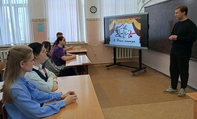 Чтобы поговорить о театре, проверить, что молодёжь знает о нём, мы отправились к ученикам 8 класса МБОУ СОШ №2. Наша программа была очень насыщенной, так как помимо разговоров об истории театра мы провели ещё и викторину для ребят.