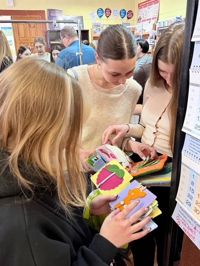Но главное удивление ждало гостей там, где привычные книги уступают место книгам, выполненным рельефно-точечным шрифтом Брайля и тактильно-рукодельным изданиям. Среди них настоящей звездой встречи стала книга «Птицы Орловской области» — особо ответственный проект, который , между прочим , был подготовлен своими силами в стенах библиотеки. Девушки также узнали о том, что мы сами издаём специализированную литературу на краеведческую тематику.